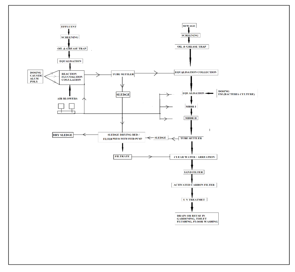 - Activated Sludge Process (ASP), MBBR, & physio chemicle for organic load (BOD/COD) reduction